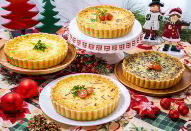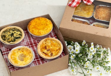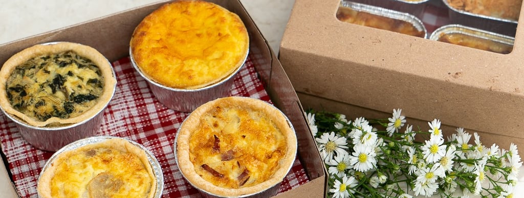 Our Homemade quiches are designed with thin layer of crust to create crusty sensation yet silky experience from our egg and homemade authentic fillings.